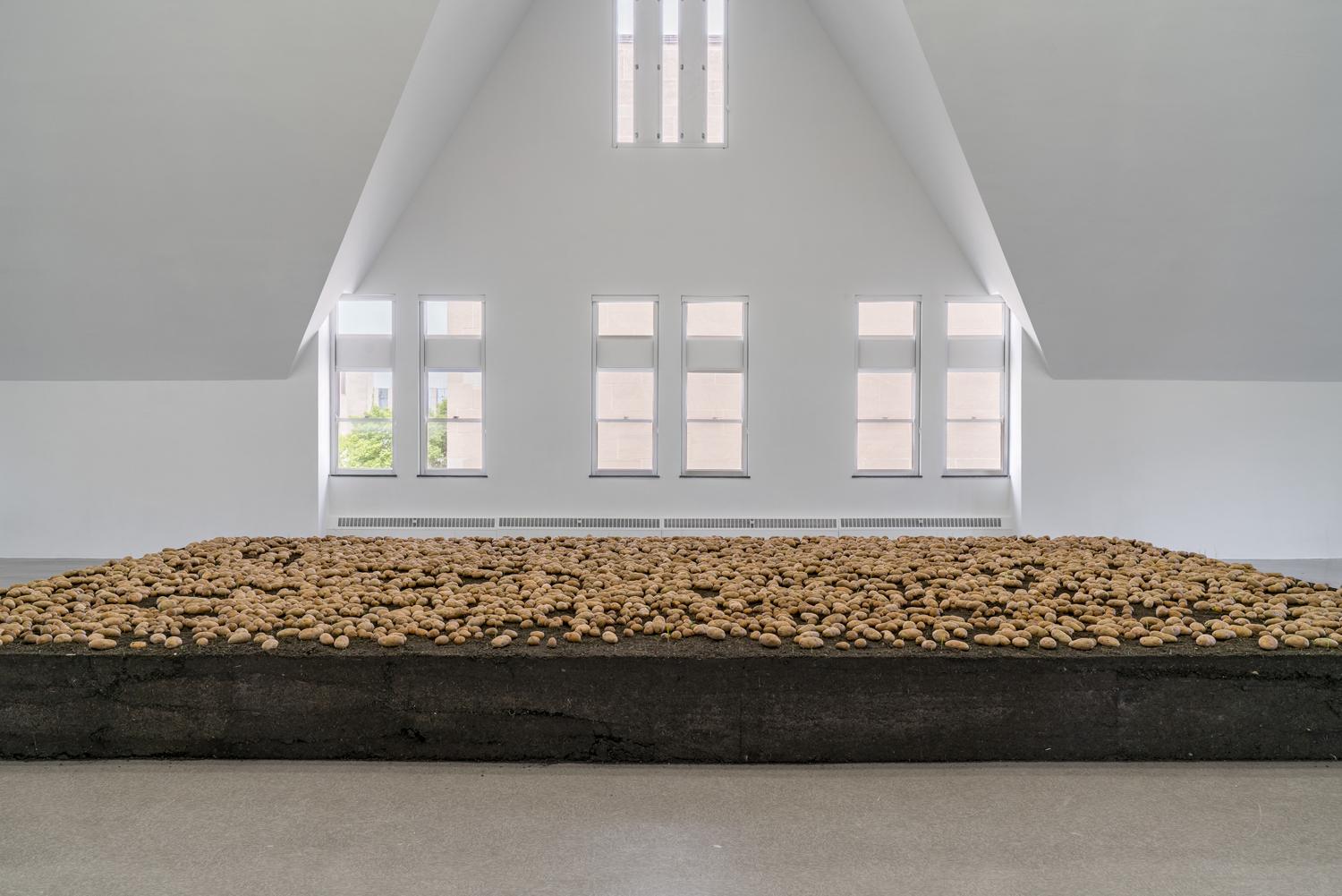 In Chicago, Garrido-Lecca unveils an installation inspired by Andean cosmovision, the planting and harvesting of potatoes as ritual events, and a unit of measurement known as the papakancha, which unites space, time, and climate. Throughout its various elements, Germinations draws on the Andean concept of Pacha, a word with diverse interrelated meanings, which evokes, among other things, a cyclical and simultaneous dimension in which past, present, and future occur.